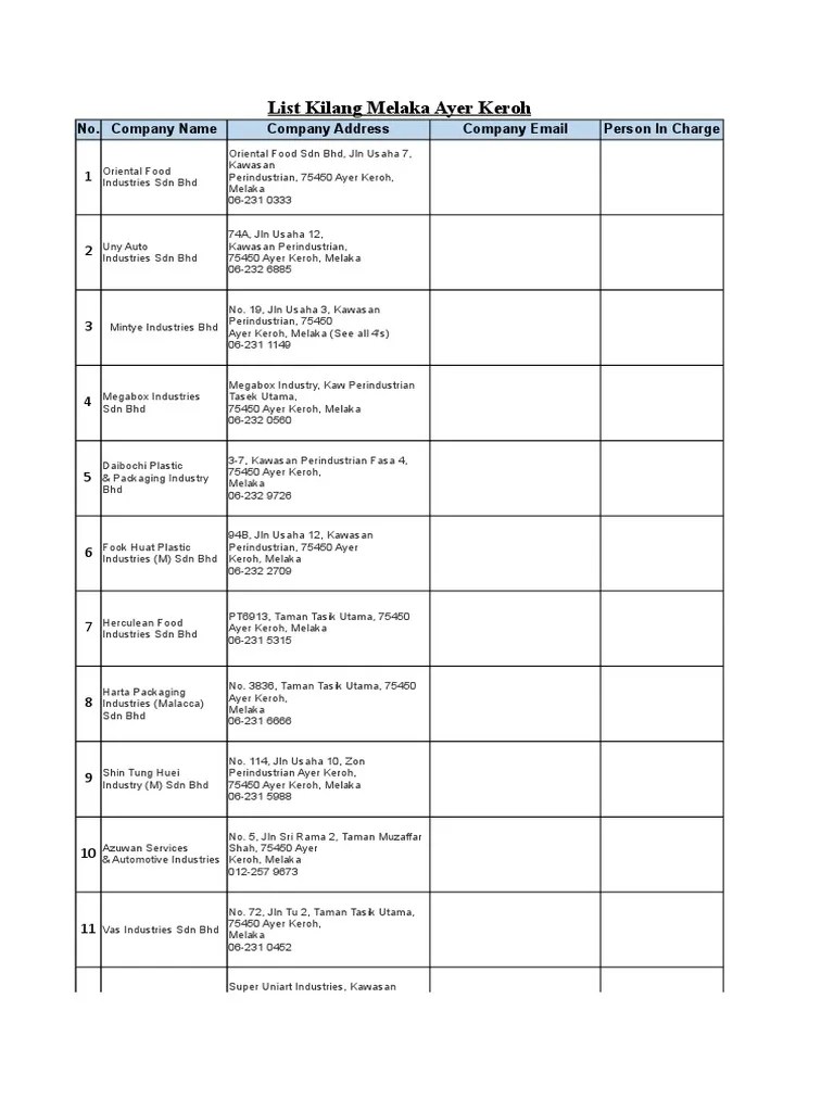 List of senarai kilang di ayer keroh melaka companies and services in malaysia.